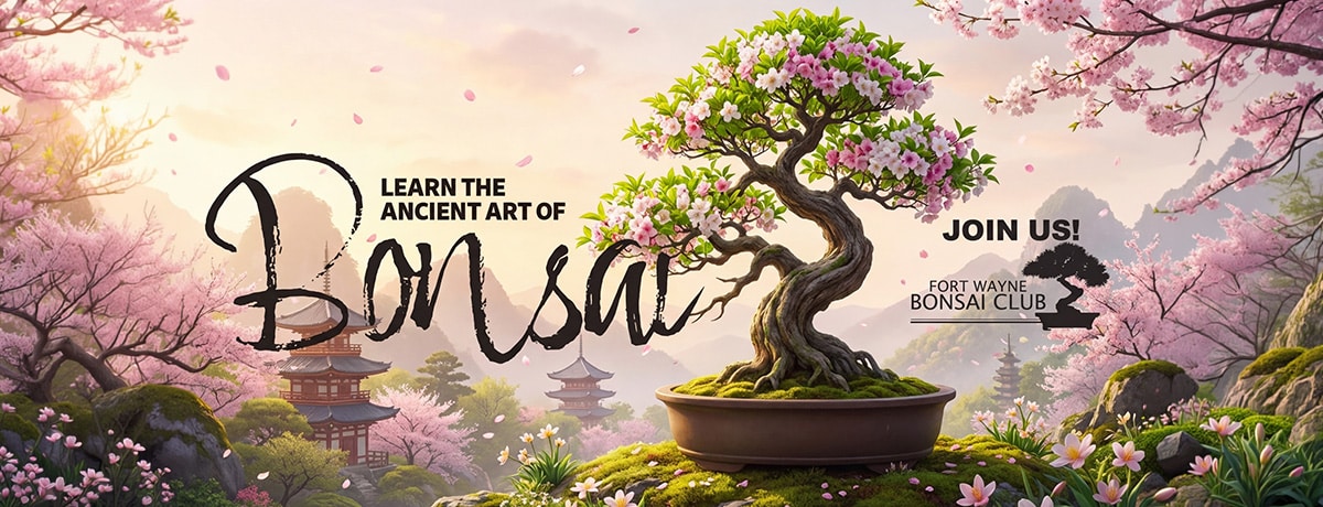 The Fort Wayne Bonsai Club strives to cultivate knowledge and bonsai artistic talent, to encourage the use of multiple species in the art of bonsai, and to teach good horticultural and bonsai artistic techniques. We create public awareness and appreciation for bonsai and inspire members of all ability levels. We provide workshops by experienced bonsai practitioners that promote hands-on learning. We see bonsai as a timeless art form that requires patience. Like our trees, we believe that our members deserve patience and attention.